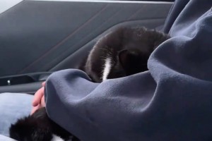 女子开门,楼道叫的猫竟自己进屋