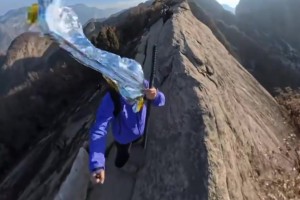 女子山顶出片翻车,斗篷变头巾