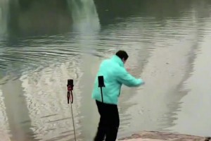 男子河边直播跳舞,鞋子掉河里