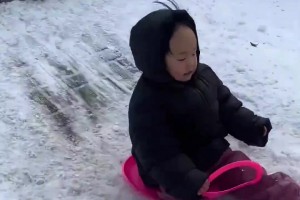 小孩滑雪撞人后礼貌打招呼,化解危机